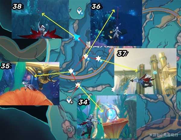 36:我们从35的位置往东北方向游,下面有一块石头,可以拿螃蟹把石头打破拿到神瞳;