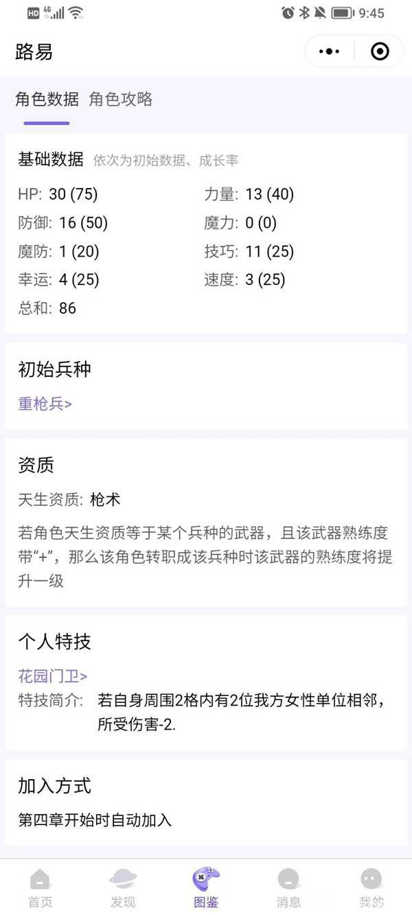 前期重甲,成长优秀,入场早,发挥空间也大,属于靠防御数值碾压一切物理的角色,成长也很高,魔防速度都不重要,注意躲开法师就好,