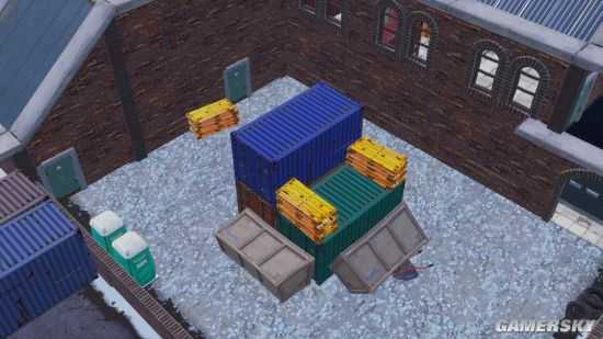 关于烟囱上的宝箱:想要开启烟囱上的宝箱,除了开局直接落在烟囱上开,其他情况下想上去,就必须有足够的材料搭板,开了宝箱之后,直接走下来,落在铁皮房顶上,不会掉血。
