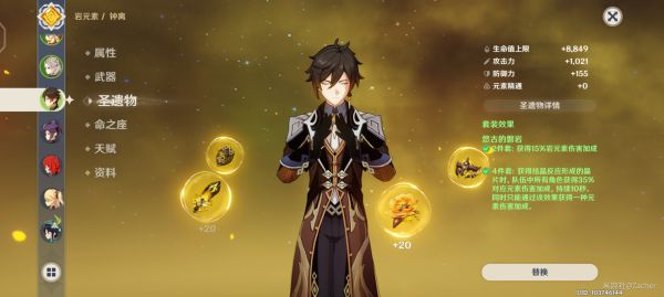 2.侧重大招输出的:攻击沙漏、岩伤杯子、双暴帽子。无二命推荐。