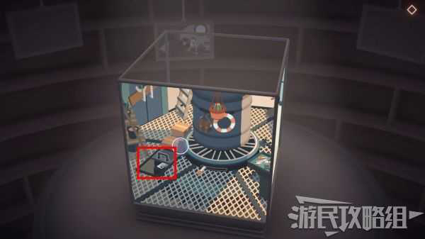 我们可以利用桌子上的台灯进行拼接,从而将仓库门前地面上的井盖抬起,打开立方体上部的画面。