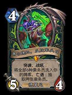 改动后:突袭。战吼:将全部8种乘务员洗入你的牌库。亡语:抽取两张乘务员。