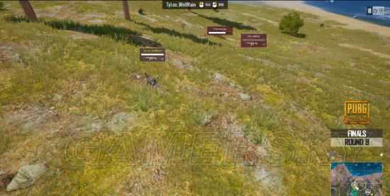 从图片可以看得出来这三名队员距离相当的近。山顶上的队员虽然占据了有利高地,却因为没有掩体不敢起身观察坡下。而山下的两名队员机智的找到了一个凹字形斜坡,卡在敌人的视线死角里,大胆的玩了一手“灯下黑”。