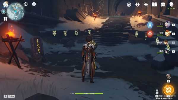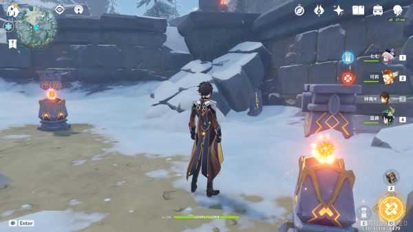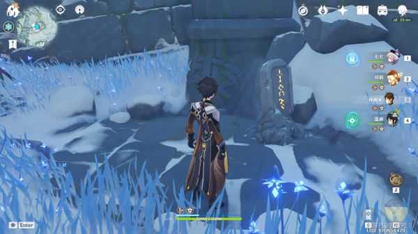 雪葬之都•旧宫这里有一个被封印的门,通过观察面前墙上的符文我们可以知道,点亮所有的符文就可以开启大门