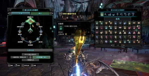 打架的时候主要用这栏奶队友,可以快速用各种回复药,一般看黑龙的动作,我一般在黑龙压起身的时候用大回复药,其他几个比较连贯的动作用蓝蘑菇大生命粉尘先把血抬起来一些再吃大回复药。