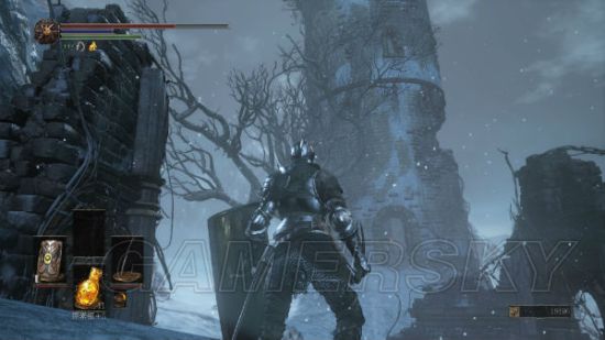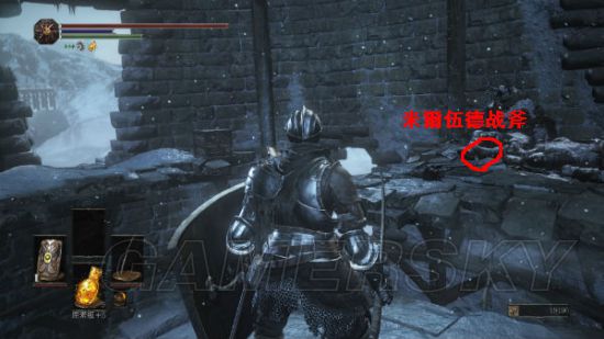 3.从守墓大狼的高山底下通过就能看见预告片中的米尔伍德战士,这边有不少战士还带着狼,前方高塔上还有人射弓。进入高塔爬上长长的楼梯可以看见对面平台上有个死去的战士,跳过去可以获得米尔伍德战斧,继续往上爬到顶在木梁上可以获得骑士长的骨灰(把骨灰交给祭祀场的老太婆就可以购买米尔伍德套装了)。往下慢慢跳可以看见有结晶虫的台阶,台阶顶有个冻死的战士,边上有灵树盾。拿完后就能离开塔了。