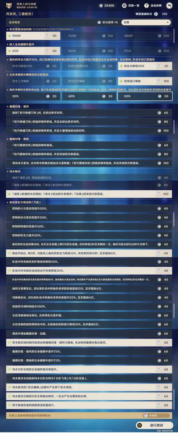 以下为我个人对于获取活动名片奖励需求下理解的「异能」选择(另外选择不克制自身输出属性的敌人抗性),具体可以根据个人实际挑战情况来选择难度和「异能」。