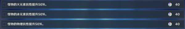 「异能」有增加敌人火元素抗性、冰元素抗性、物理抗性这3项,如果要使用其中的输出属性的角色的话可能会面临亏伤害或亏积分的情况。
