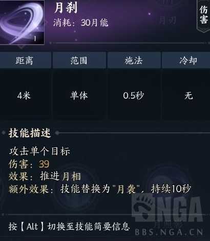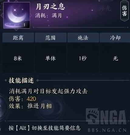 推至满月可释放一次加强技能:月刃之息,且月刃之息可堆叠次数并继续推一次月相。