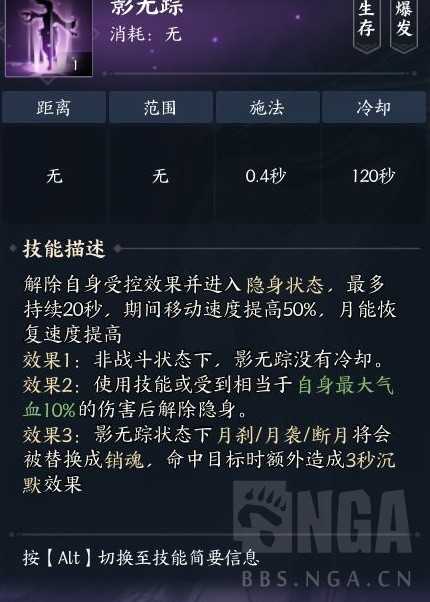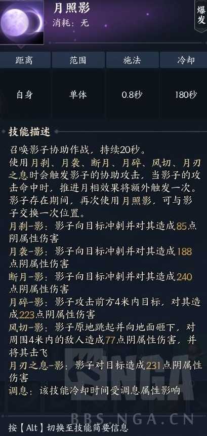 爆发手法:因为月照影状态下是双倍月相,释放第一次月刹后,就可以直接释放月刃之息。