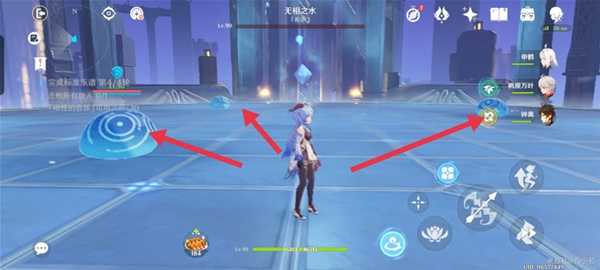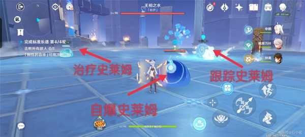 无相水,残血后会召唤三个史莱姆,用冰系打三个史莱姆,阻止三个史莱姆走到中间的核心。
