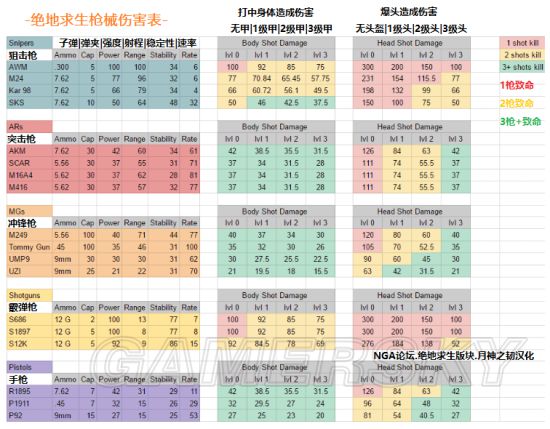 Reddit用户AnarchySwitch制作了一份详尽的绝地求生武器的数值表,让我们得以一窥不同种类的枪械中哪一种最为给力。