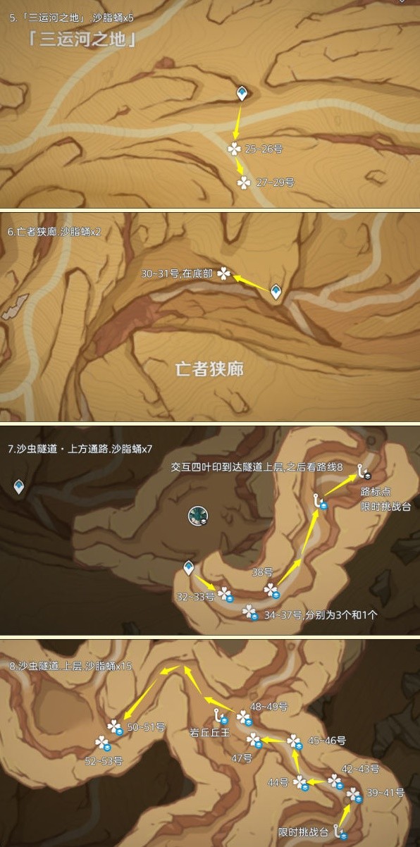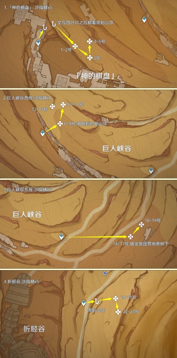 正文 《原神》沙脂蛹采集线路推荐「超实用」 游戏小天使 /2025-07-05 16:06:07 /25 浏览量 0705 《原神》沙脂蛹是部分角色的培养素材,想要知道沙脂蛹怎么获得的玩家请看下面“吃瓜的喵”带来的《原神》沙脂蛹采集线路推荐,希望能够帮助大家。 路线一 及时当勉励,岁月不待人。 路线二 路线三 -- 展开阅读全文 --