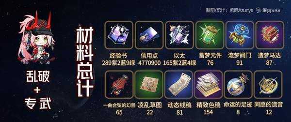 《崩坏星穹铁道》乱破即将加入游戏,很多玩家想要知道她的突破需要什么素材,下面请看“紫喵Azunya”带来的《崩坏星穹铁道》乱破培养材料汇总,希望能够帮助大家。