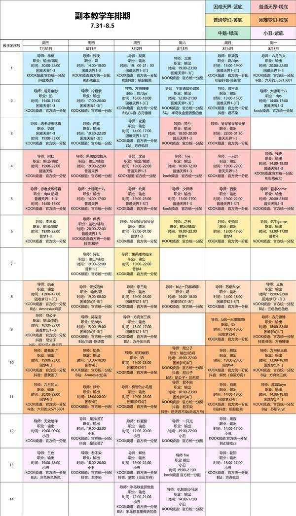 7.31-8.5教学排期如下