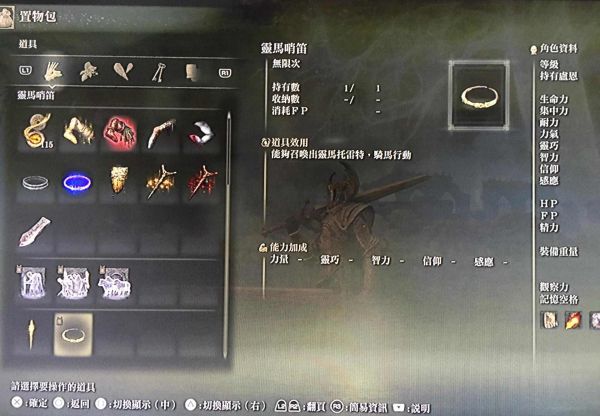 调整圣杯瓶(元素瓶)的数量和人物升级,以及更改战灰(武器战技)都在这里执行,这部分可以说真的相当方便。