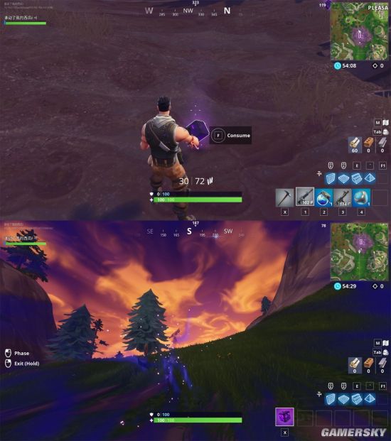 其次就是这次大更新之后新加入的一种物质——暗影之石,刷新方式有点像第四赛季陨石坑里的登岩,在一个地区内生成,数量很多,使用方式也相同,走近之后按住使用键(E)使用,使用暗影之石将在短时间成为“暗影形态”,效果持续45秒,但可以长按鼠标右键提前退出,