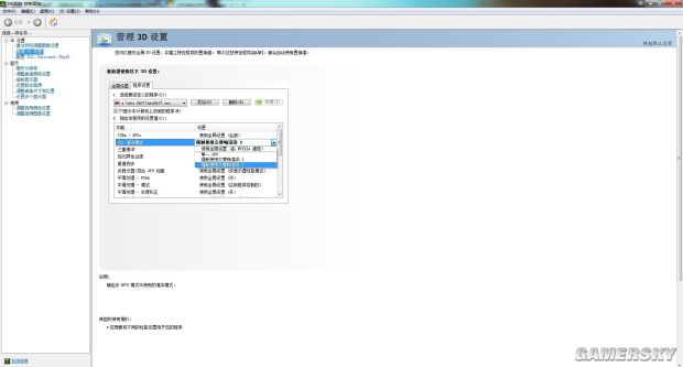首先,打开NVIDIA控制面板,找到“管理3D设置”,在右侧的程序设置中选到2k17.exe,然后将SLI渲染模式选择为“强制使用交替帧渲染2”,然后右下角的“应用”。