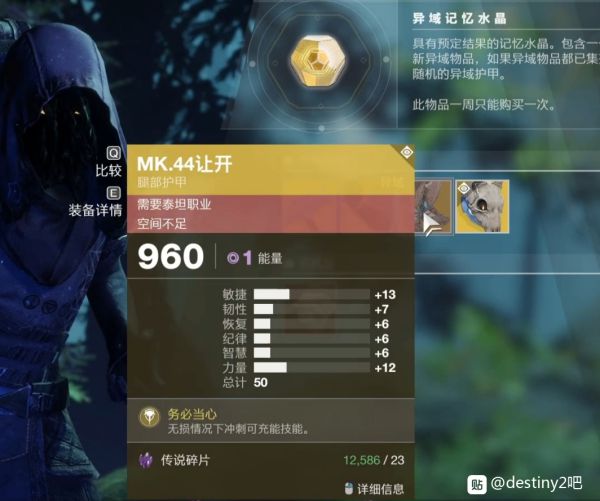 泰坦MK.44让开腿甲,在满生命值的情况下装备地震打击,战锤打击或圣盾强袭时,使用泰坦冲刺可以获得一层蓝色护盾,用以上技能击败敌人会再获得一部分近战能量回复。(泰坦替代DJ头的最佳替代品,恶心敌人专用防具,除非对面掏手持超新星,不然那一层蓝盾真的很恶心,也推荐入手。)