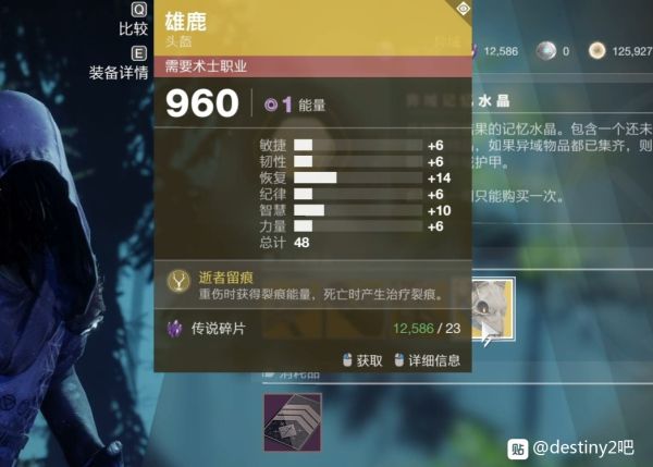 术士雄鹿头盔,在守护者红血重伤时可获得裂痕能量,死亡时,守护者尸体会在短时间内生成一个具有治疗效果的裂痕能量。(工具人专用,不推荐购买,收藏家请忽略哦。)