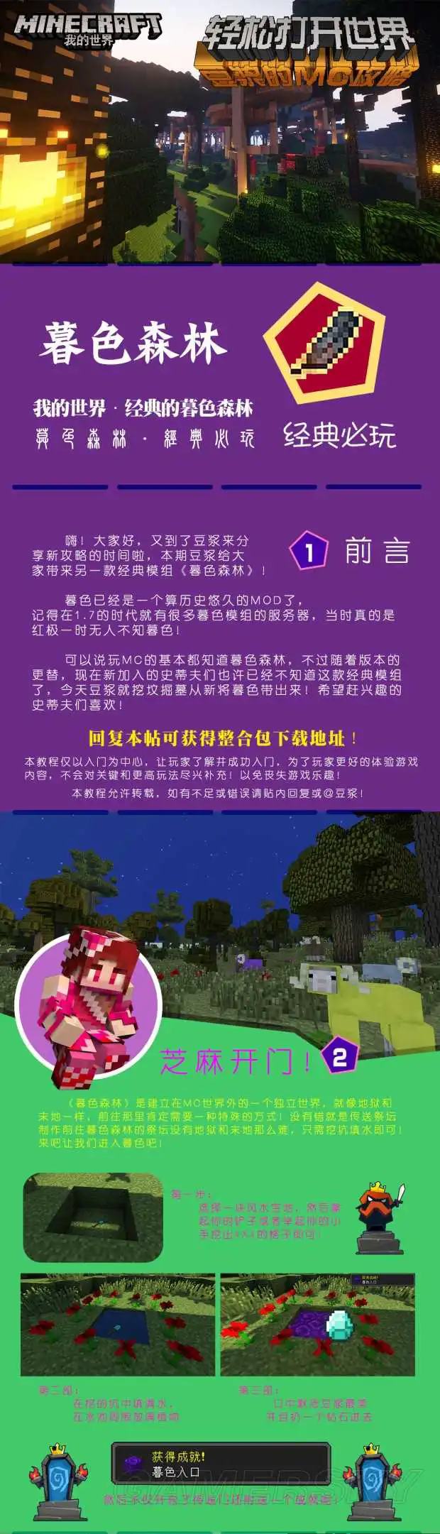 《我的世界》暮色森林MOD怎么玩?作为一款受众较广的大型MOD很多玩家都不了解其具体玩法,那么下面就为大家带来《我的世界》暮色森林MOD玩法图文全攻略,感兴趣的玩家不要错过。