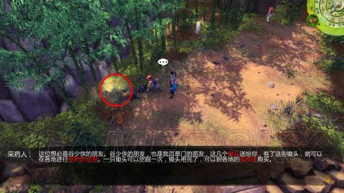 1、来到杜康村的左上角,遇到采药人,他会向你说明一切。然后左边的草药就可以进入采药小游戏。