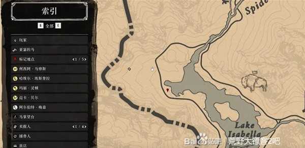 首先,我们需要知道白马的位置。它位于伊莎贝拉湖的左侧,也就是地图的左上角。这里有一个固定的刷新点,会出现一匹白色的阿拉伯白马。
