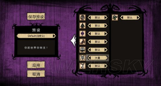 接下来是世界设置,永冬加魔化巨鹿大量,其它boss如果要来只能大量,但是来了肯定是跟巨鹿老哥一起来的,这样他们打起来就没我事了,所以其它boss不调,保证自己有boss杠