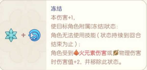 水+冰,冻结,冻结出战角色使其不能使用技能和普攻