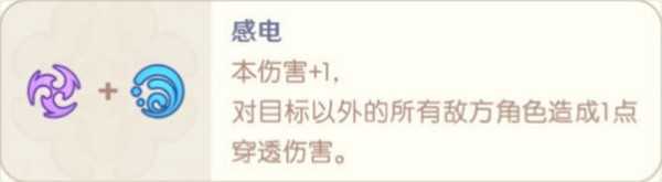 雷+水,感电,伤害+1,并对后台角色造成1点穿透伤害(无视护盾)