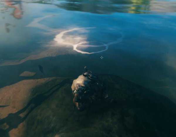 过一会就有鱼过来了,调整镜头角度,瞄准鱼,狂按E