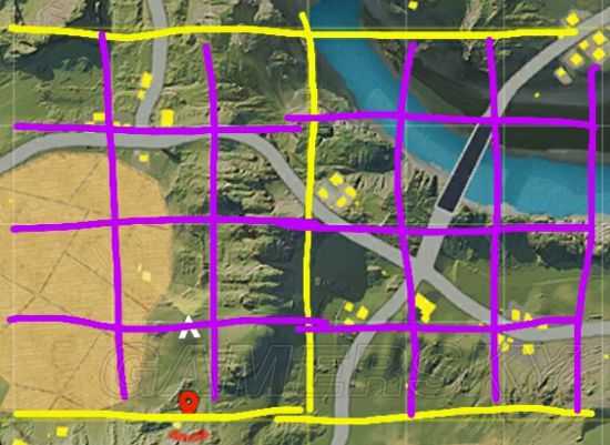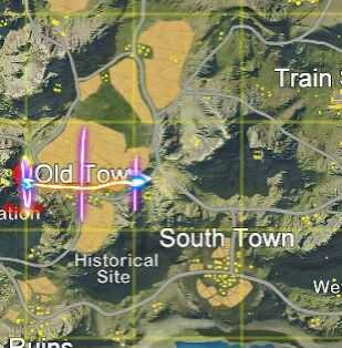 所以说,如何 最快速到达你要的地方,你要平飞到达你要的点,大约前1/4格的距离,也就是你上图红点,提早一点点的位子,就要脸朝下让他在红点的位子自动开伞,然后继续脸朝下,他会降落在差不多上图玩家所在的点。