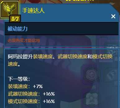1-2 手速达人(3):每级提升0.08的装填和0.19的切枪与模式切换速率加成,让你动作更利索,手感更丝滑,也提升你的输出占空比,方便打出高频火力。加点比较看个人喜好。