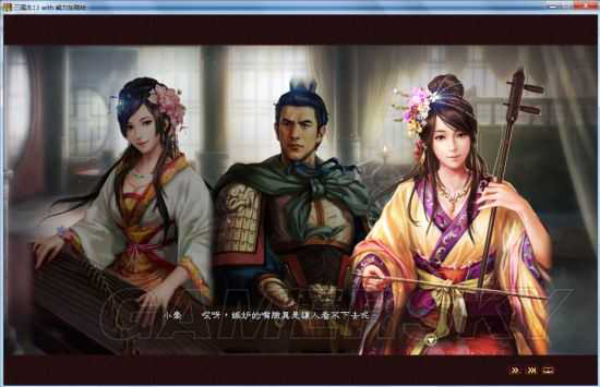 这里有一个有意思的结局,我后来读档,在快统一的时候,不做商人,去做官。结局就是,三个老婆争宠,哈哈!!马云禄问我吃什么,大乔问我喝什么,小乔抢着让我陪。。。。切了几张图给大家看看。。。