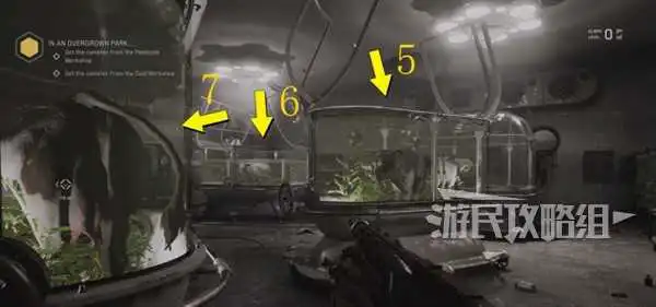 在主线目标“在那草木疯长的园区…”中,我们需要寻找4个罐子。其中一个罐子所在的房间内有很多水箱,这些水箱内都关着动物,房间中央还有一个操作板,上面是一个动物九宫格。