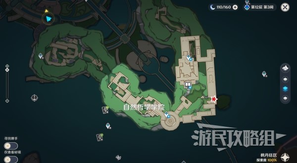 前往自然哲学学院如下图所示的大门,在世界任务【水色潮痕】期间也路过过这里,就在世界任务目标相反的方向,使用【学院某处的钥匙】开启大门后,可以获得【神秘书页其二】和宝箱等奖励。