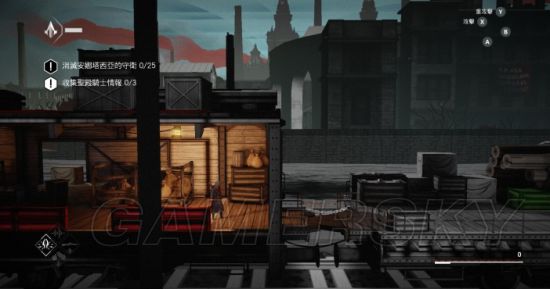 再来说说画风,俄罗斯篇的画面风格相比艳丽的印度篇和水墨风的中国篇显得更加阴沉,黑白主色调中的一抹抹红色非常显眼。画面的背景也映射出了时代的背景,一根根形象的烟囱时刻在提醒着我们,刺客信条系列已经跨入到工业发达的20世纪初,而地面上的火车和电车更是让人新鲜感十足,同时也带来了新的玩法。