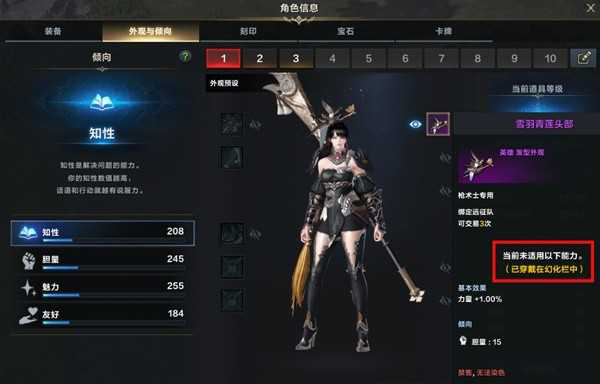 除了好看的“外在”,外观也有着实在的“内里”,每件外观都有着基本效果和倾向两种外观能力,基本效果可以为冒险家的角色增加额外的力量/敏捷/智力属性,根据职业的不同加成的属性也不同。