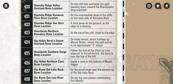 正文 《荒野大镖客2》全恐龙化石地图位置「超实用」 游戏引路人 /2025-02-27 16:55:07 /40 浏览量 0227 《荒野大镖客2》中有许多的收集品等待玩家收集,其中恐龙化石作为一种收集品,玩家在全收集化石后可以得到丰厚的奖励。下面小编带来了《荒野大镖客2》全恐龙化石地图位置,一起来看看吧。 騋牝三千。 -- 展开阅读全文 --