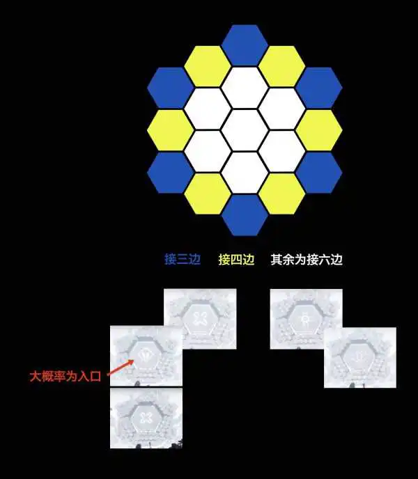 所以这里可以大胆预测,当19块的大拼图完成时,中心的六边形拼块会形成一个完整的迷宫,根据之前方尖碑图标高低顺序都有效的经验推断,已经标注的这一块既可以看做起点也可以是终点。