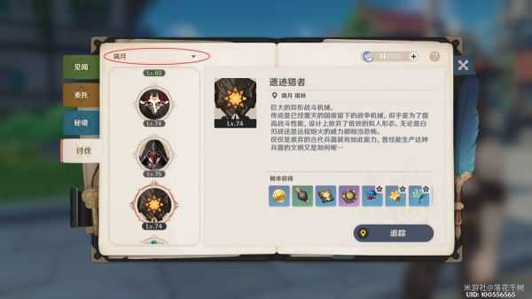 注意需要左上角切换地图才可以找到。这一点大部分的旅行者应该都知道。据我所知这是目前只有在璃月才有的怪物。世界五岩本中会有一只高达90级遗迹猎者,很难搞,这也是我准备写这篇帖子的起因所在,有需要世界五刷岩本的小伙伴可以事先找几只野外去熟悉一下交流下感情。