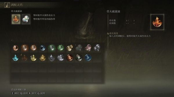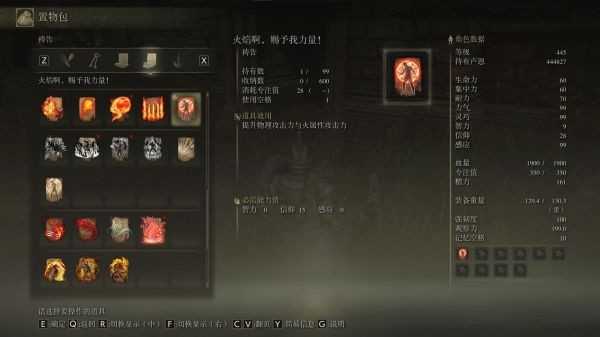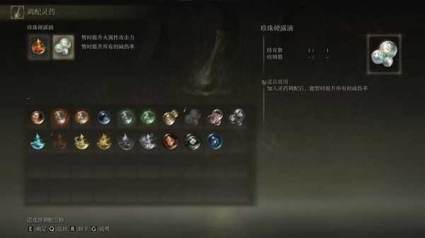 接下来是祷告Buff,火焰啊赐予我力量,30s的持续时间,能直接加成圣矛的物火混伤,效果拔群。输出向露滴装备带火破露滴即可。