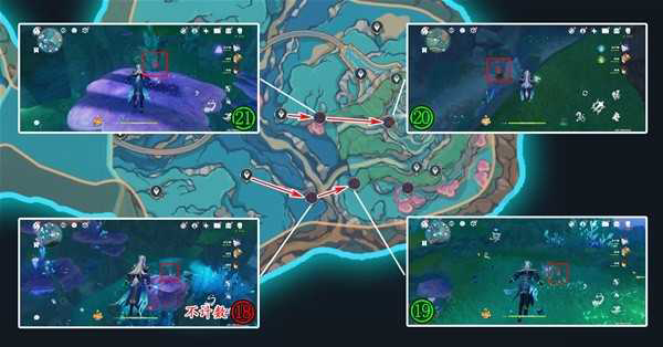 20、传送点东方向植物顶部。挑战内容为收集微粒挑战。