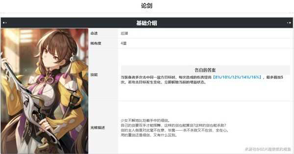 次选为4星光锥论剑,该光锥叠加层数最高5层,如果按满阶算能提高百分之80伤害,在后期遗器练度较高的情况下收益高于星海巡航,加上属于常驻效果并不需要击杀触发通用性强还是非常不错的,论剑的层数是按攻击段数来叠,希儿一个战技就可以叠4层,达成条件也比较简单,缺点就是该光锥需要抽取获得,如果不能满阶还是优先星海巡航。(图示为星海巡航及论剑)