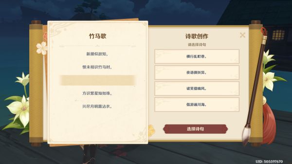 接着这位吟游诗人写下了几句诗词,让我们帮忙选择(选择不影响活动奖励,我选了第四句)