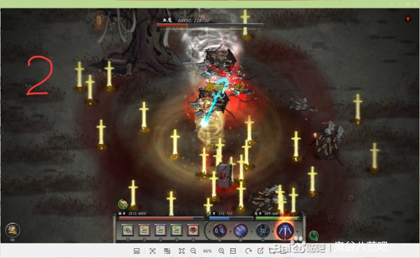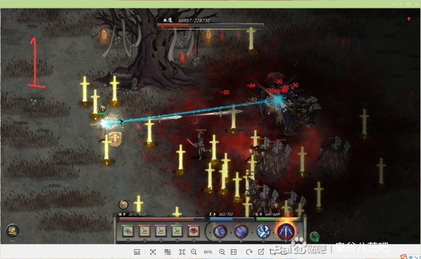 看图2,这是血魔的第二个技能,会放两个血圈,这时候需要用风神法躲过去,顺便把旁边的小怪打死,血圈快结束的时候跟血魔拉开距离,为什么拉开距离下面说。