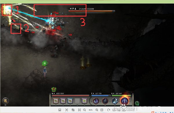 看图1,开局先跑到左上角1号位子,何罗鱼的触手打不到。期间利用武技攻击小兵,小兵走到近距离后施放绝技,如果施放完绝技还有小兵存在(小兵快要走到你脸前)可走到2号位子。在你觉得触手攻击看着要结束时,最后一次触手会出现在3号位子,千万要注意。