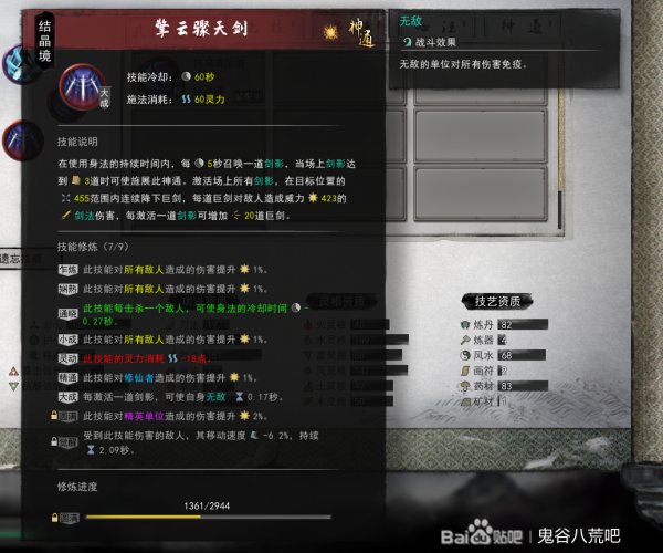 最好不要放神通,首先神通会耗蓝,如果剑影多了会卡屏!