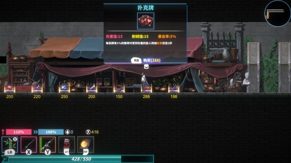 这个文案上的贫瘠还蔓延到了游戏中的NPC——负责升级的白毛妹子里面的物品描述看得我一愣一愣的:我家院子里种了两颗柳树,一棵是提升属性携带上限、一棵还是提升属性携带上限,看steam制作组发言,据说最多的经费都是给画师了,在这里想要劝制作组把画画精力分一点出来,好好写文案。