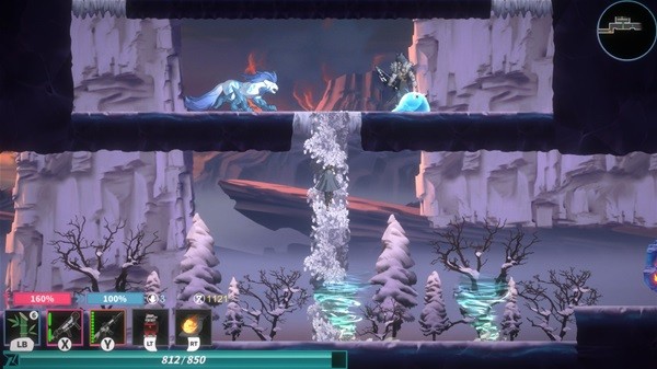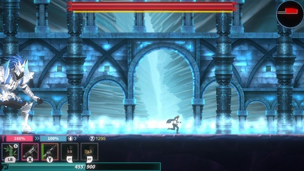 然后确实很香——首先从天赋上,游戏中就有两个堪称远程开挂的天赋,分别是技能CD减半,还有远程武器弹药装载速度增加50%(还有弹药量加倍),然后一般横版动作游戏(无论肉鸽还是恶魔城)都是近战高风险高收益,但《回溯勇者》它不,它的远程武器就是低风险高收益。